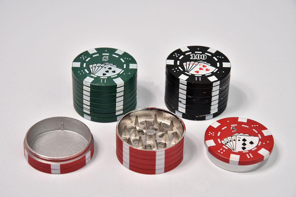 The poker chip grinder is not just a functional tool; it's a statement piece for enthusiasts and connoisseurs alike. Designed with precision and style, this grinder embodies the essence of the poker world, offering both utility and aesthetics. Its compact size and durable construction make it perfect for grinding herbs with ease, while its unique design adds a touch of personality to any collection. Whether you're a seasoned grinder or a casual user, the poker chip grinder is a must-have accessory for anyone looking to elevate their herbal experience.