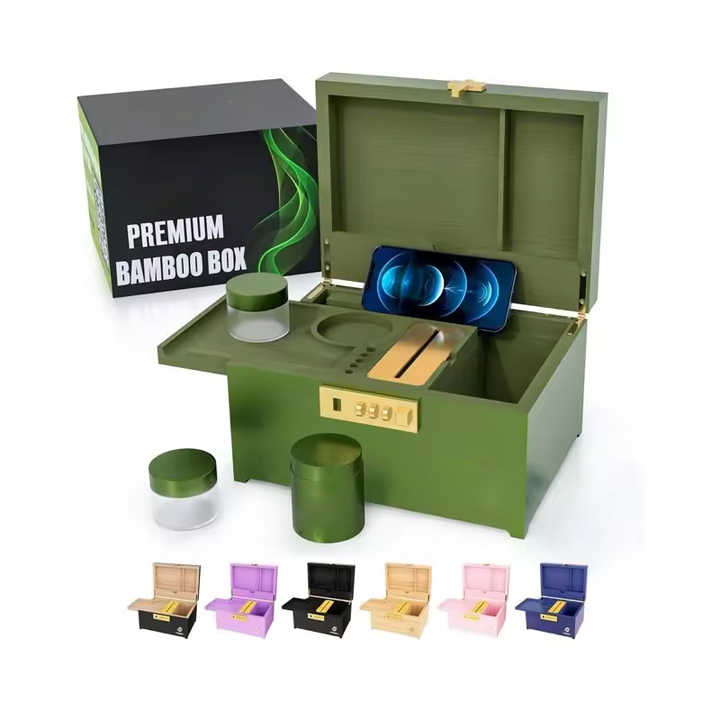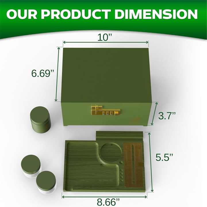 Customizable sliding tray with magnetic features and removable dividers allow you to adjust the layout to fit your storage needs. Includes spots for jars, a rolling tray, and a groove for extra storage. Secure your valuables with a built-in, easy-to-set combination lock (default 0-0-0). Strong hinges ensure smooth access, and a removable tray allows for easy cleaning. Perfect for keeping your essentials safe, organized, and discreet.